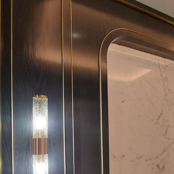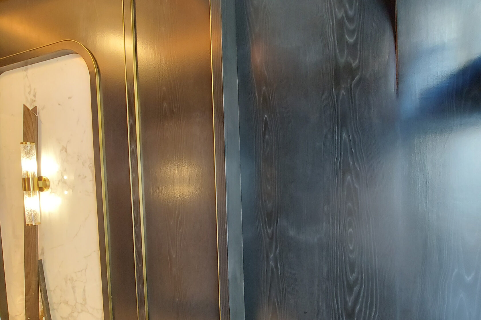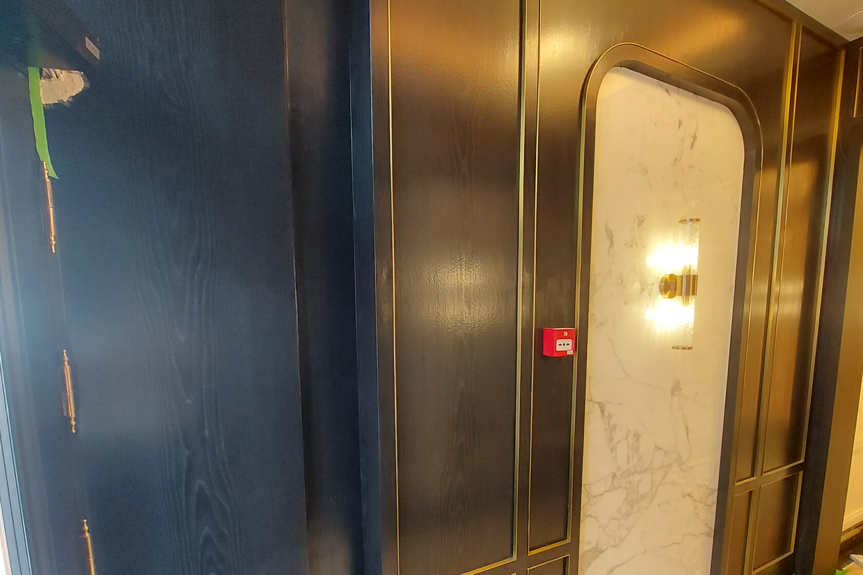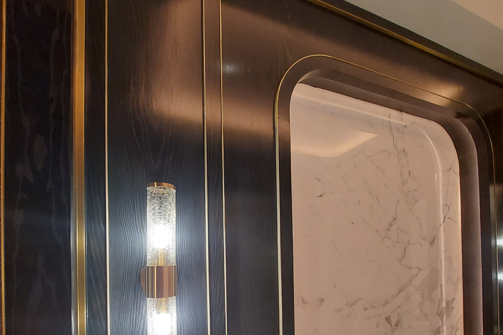 Bombay Kasiinos teostasime esindusliku trepikoja seina- ja laepaneelide lahenduse, mis ühendab luksusliku materjalikasutuse ning täpse teostuse. Paneelistus loob ruumi väärika ja harmoonilise atmosfääri, rõhutades interjööri modernset stiili ning kvaliteetset viimistlust.