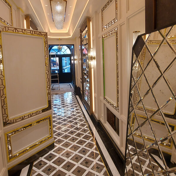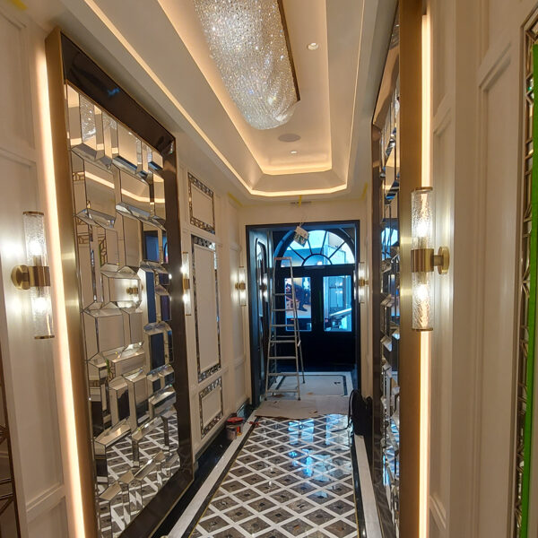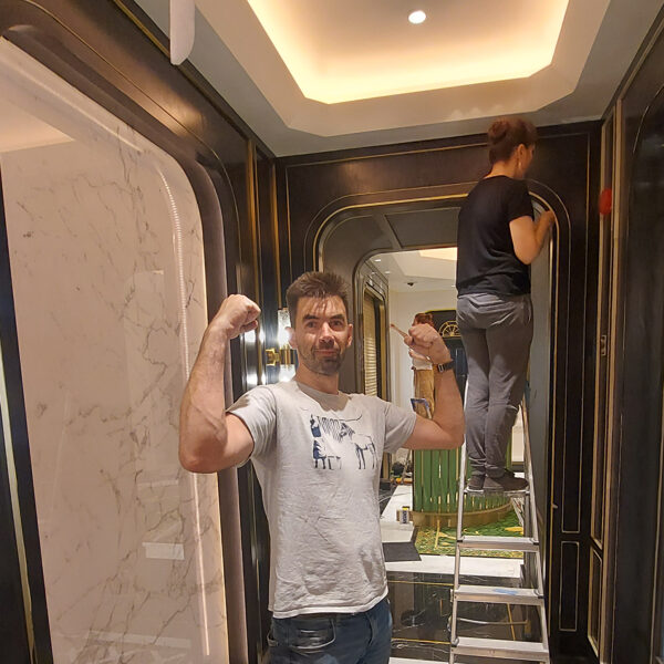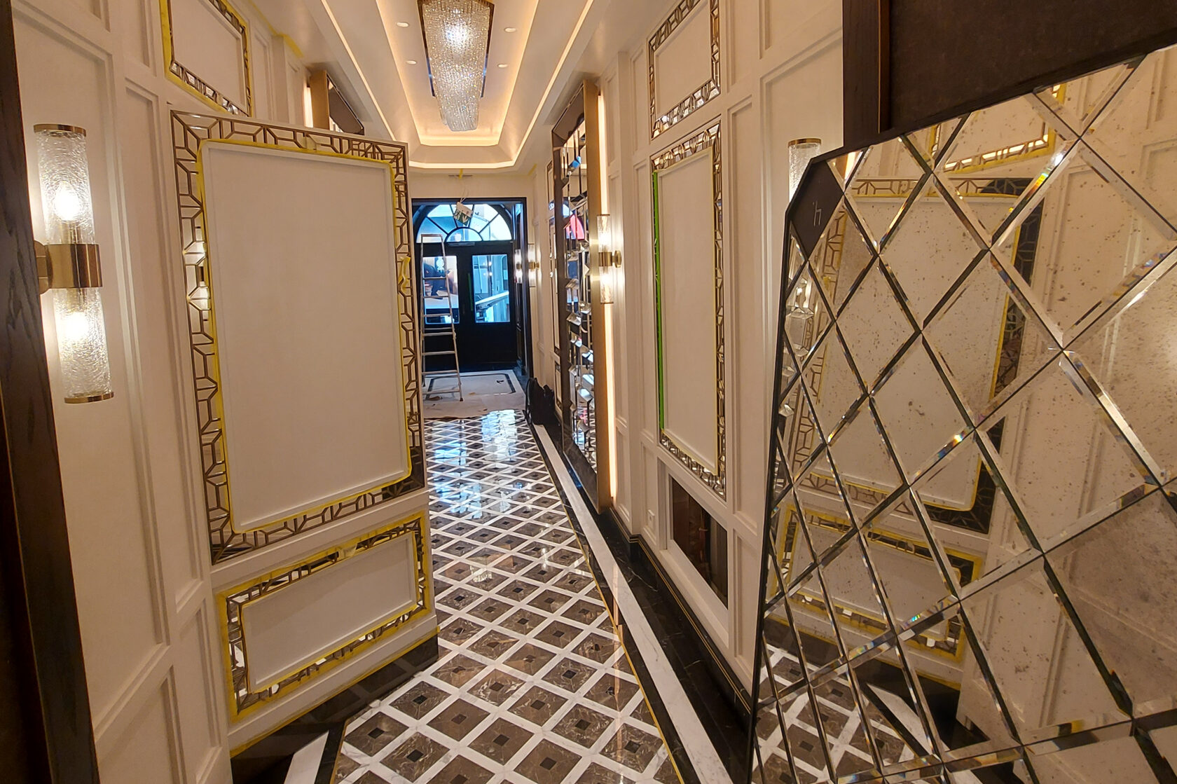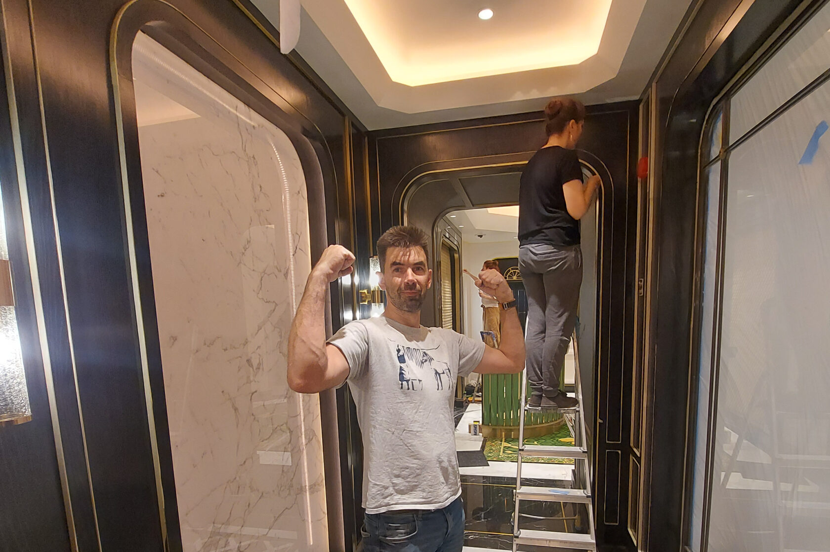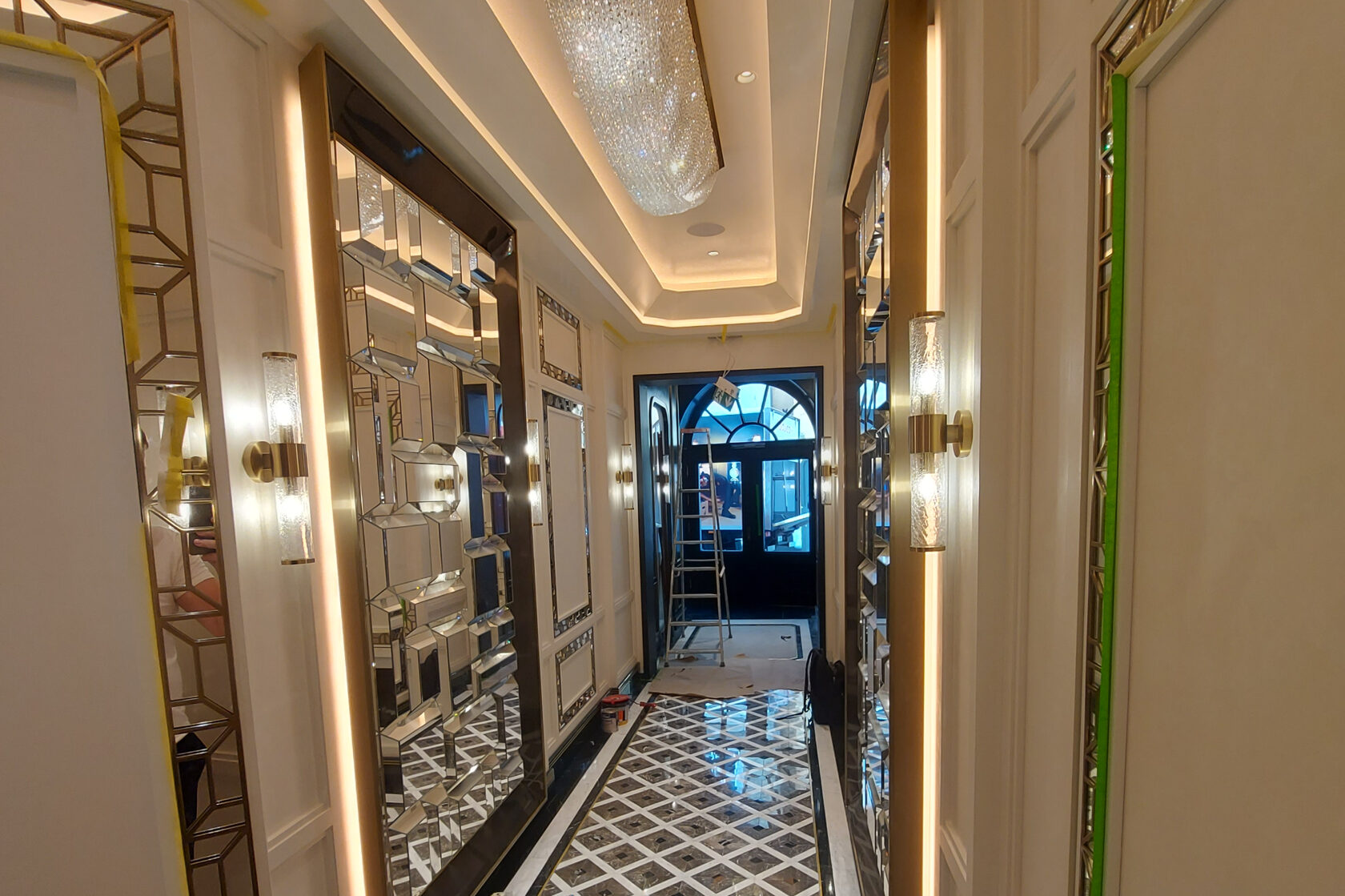 Bombay Kasiinos teostasime esindusliku trepikoja seina- ja laepaneelide lahenduse, mis ühendab luksusliku materjalikasutuse ning täpse teostuse. Paneelistus loob ruumi väärika ja harmoonilise atmosfääri, rõhutades interjööri modernset stiili ning kvaliteetset viimistlust.