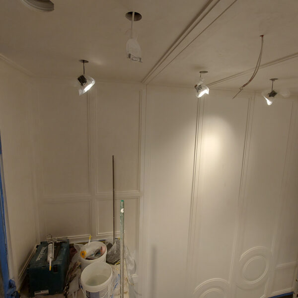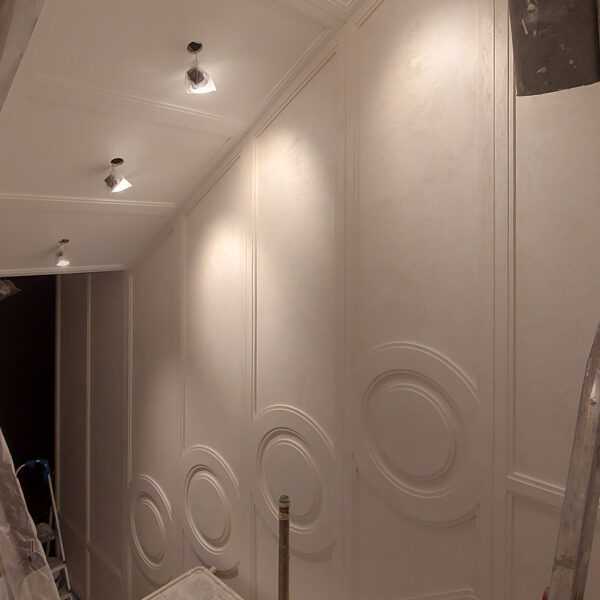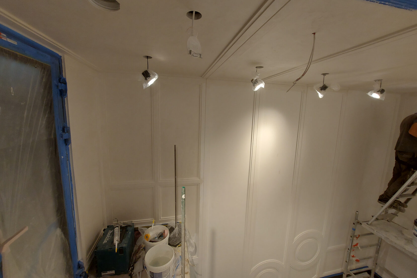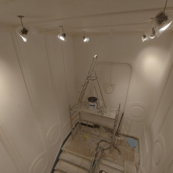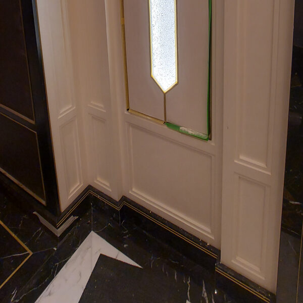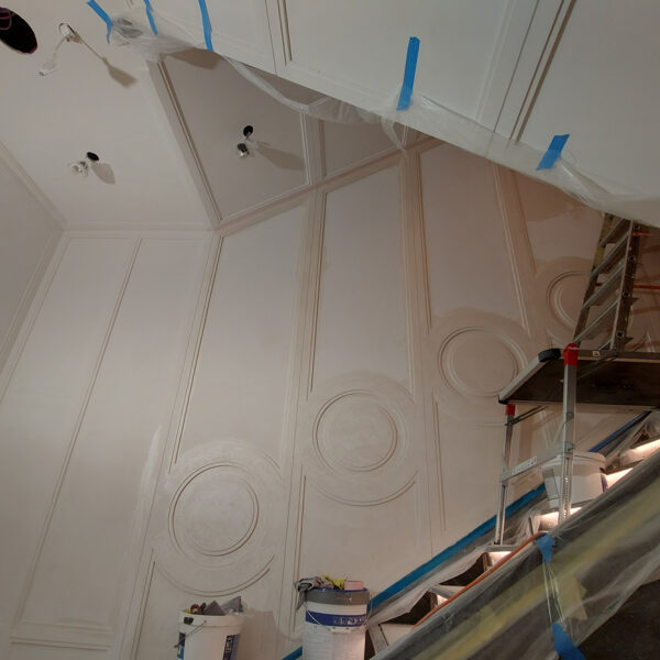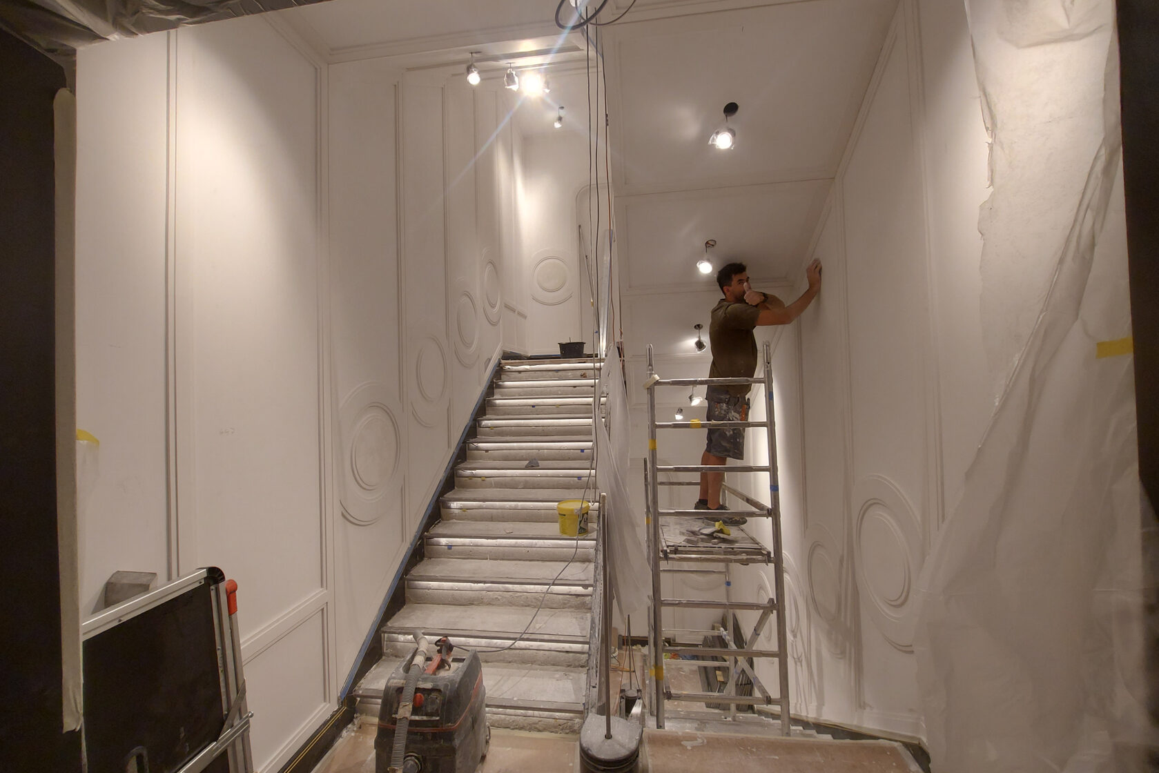 Lisaks paneelitöödele paigaldasime ka põrandakatteid, tagades kogu trepikoja viimistluse ühtse ja elegantse tervikuna. Projekti käigus viidi läbi ka aderdustööd, mis aitasid saavutada detailideni viimistletud lõpptulemuse.